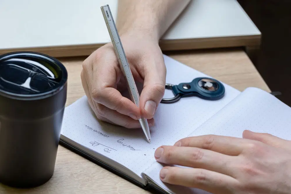 Mat alüminyum ve metalden üretilen bu çevirme mekanizmalı geri çekilebilir kalem, siyah, lacivert, kırmızı, sarı, neon-turuncu ve gümüş dahil olmak üzere çeşitli renklerde mevcuttur. Bu sadece bir kalem değil; mimarlar, mühendisler, müteahhitler ve tasarımcılar için düşünceli bir hediye.